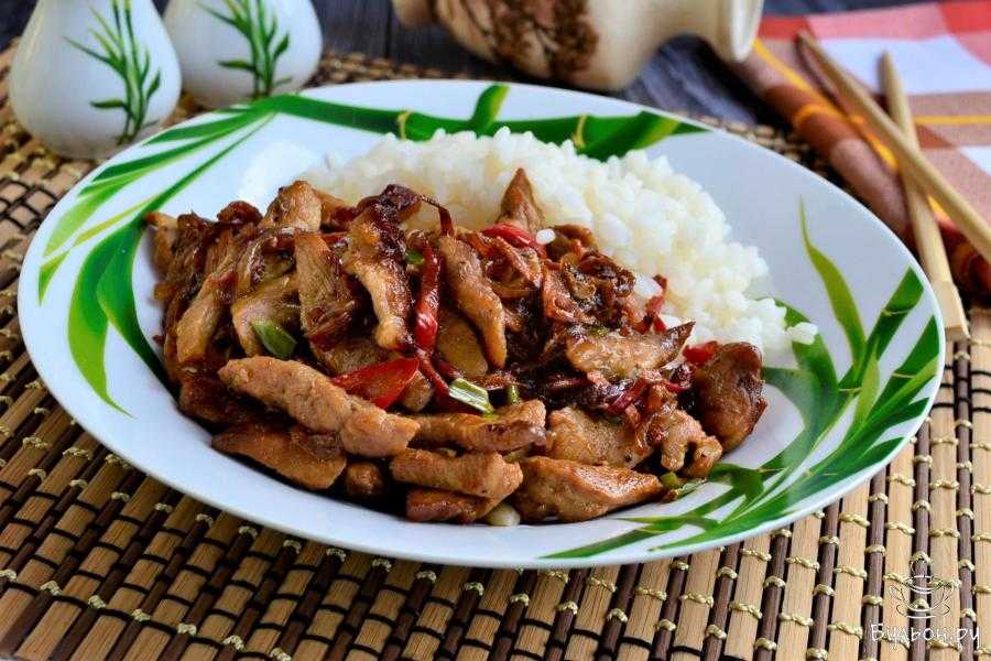 - Гарнировать рекомендуется отварным рисом.