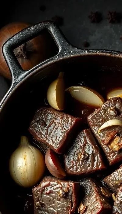 Рецепт 1: Тушеная говядина с чесноком и луком