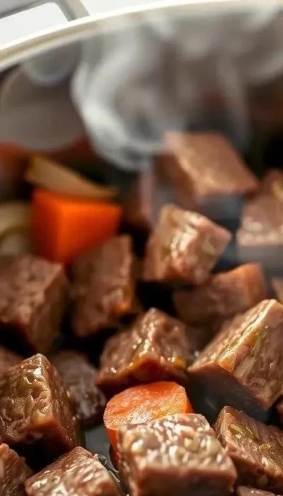 Шаг 2: Обжарка мяса. В глубокой сковороде или кастрюле разогреть растительное масло. Выложить говядину и обжарить на среднем огне до золотистой корочки, примерно 5-7 минут. Важно обжаривать мясо небольшими порциями, чтобы оно не тушилось, а именно обжаривалось.