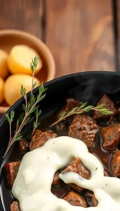Говядина с хреном и чесноком – это прекрасная база для кулинарных экспериментов! Добавление сметаны (100-150 г) в конце тушения придаст блюду нежность и сливочный вкус. Просто перемешайте сметану с мясом за 10-15 минут до готовности и прогрейте, не доводя до кипения.