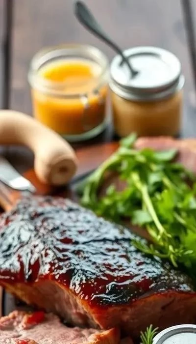 Рецепт 1: Запеченная говядина с хреном и горчицей в духовке