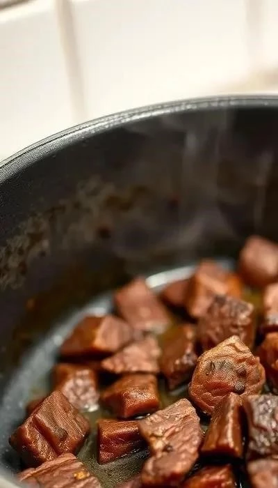 Шаг 1: Подготовка мяса. Нарежьте говядину на кусочки среднего размера, примерно 3-4 см. Это позволит мясу равномерно протушиться и стать мягким. Обсушите мясо бумажными полотенцами, чтобы оно лучше обжаривалось. Шаг 2: Обжаривание мяса. Разогрейте в глубокой сковороде или кастрюле с толстым дном растительное масло. Выложите мясо в сковороду и обжаривайте на сильном огне до золотистой корочки со всех сторон. Это займет около 5-7 минут. Обжаривание мяса – важный этап, который позволяет сохранить его сочность.