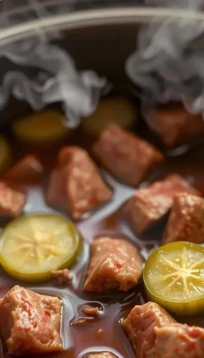 Использование кислых огурцов для балансировки вкуса жирного мяса – давняя практика. Это позволяло сделать блюдо более легким и освежающим. Сочетание говядины и маринованных огурцов, вероятно, возникло как способ разнообразить повседневный рацион и придать привычным блюдам новые оттенки вкуса.