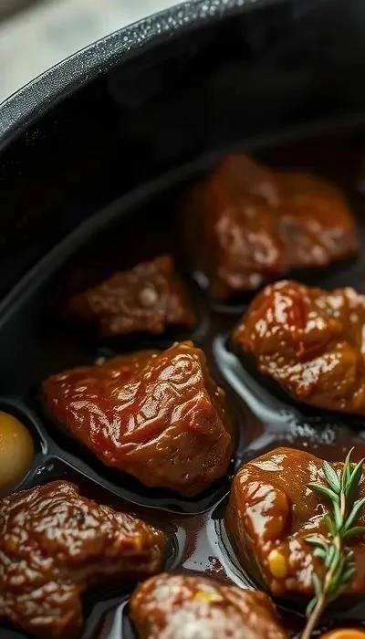 Тушеная говядина с тимьяном и чесноком в красном вине