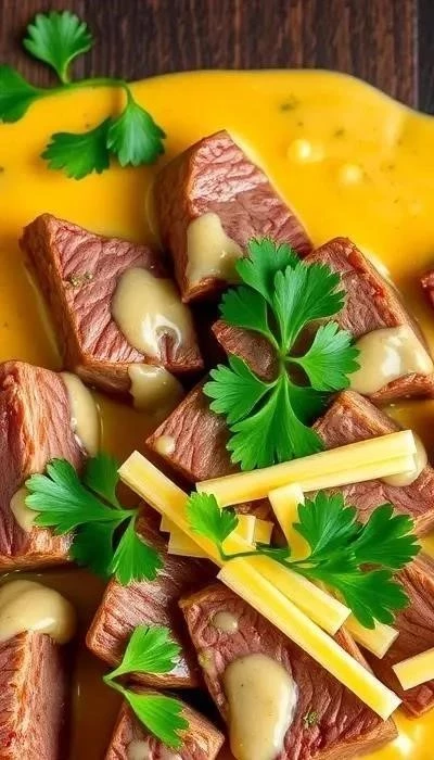 Чтобы избежать пригорания сырного соуса, используйте водяную баню или готовьте на самом медленном огне, постоянно помешивая. Для более насыщенного вкуса добавьте немного мускатного ореха. Подавайте говядину в сырном соусе с картофельным пюре, рисом или макаронами. Украсьте свежей зеленью, например, петрушкой или укропом. Для пикантности можно добавить немного черного перца.