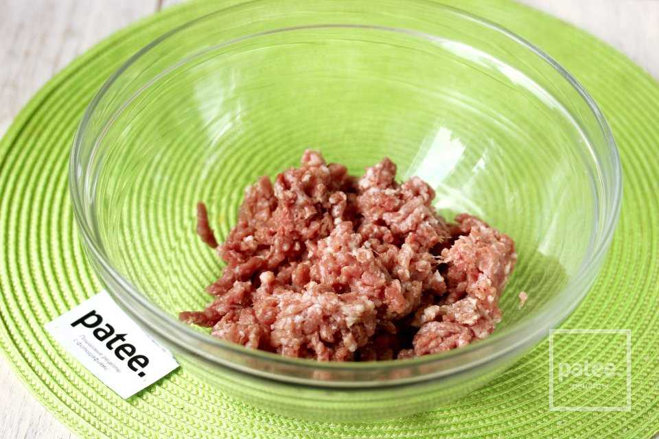 У нас же сегодня, фарш из говядины. Он был приготовлен заранее, пришлось подождать, пока оттает.