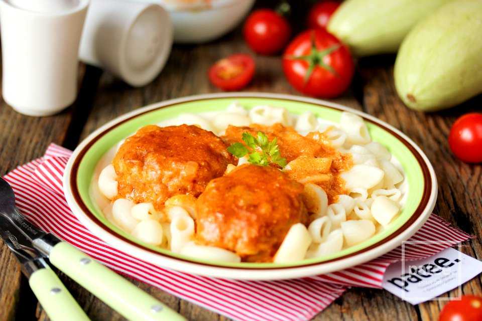 Готовим нежные котлетки из свиного фарша с кабачком в сметанно-томатном соусе! Не только кабачок придаёт котлетам сочность, в этом рецепте важную роль играет и соус на основе сметаны и томатной пасты, в котором котлеты тушатся после обжаривания. Естественно, румяной и зажаристой корочки на готовых мясных шариках не будет, зато они будут таять во рту: мягенькие, нежные, объедение просто! Если вы не очень любите вкус кабачка, не беда — в котлетах сложно будет найти хоть намёк на присутствие этого овоща, имеется ввиду во вкусе и аромате, хотя процентное соотношение мяса и кабачка почти соразмерно. Слегка подкорректировав рецепт, можно приготовить замечательные мясо-овощные шарики для детей!