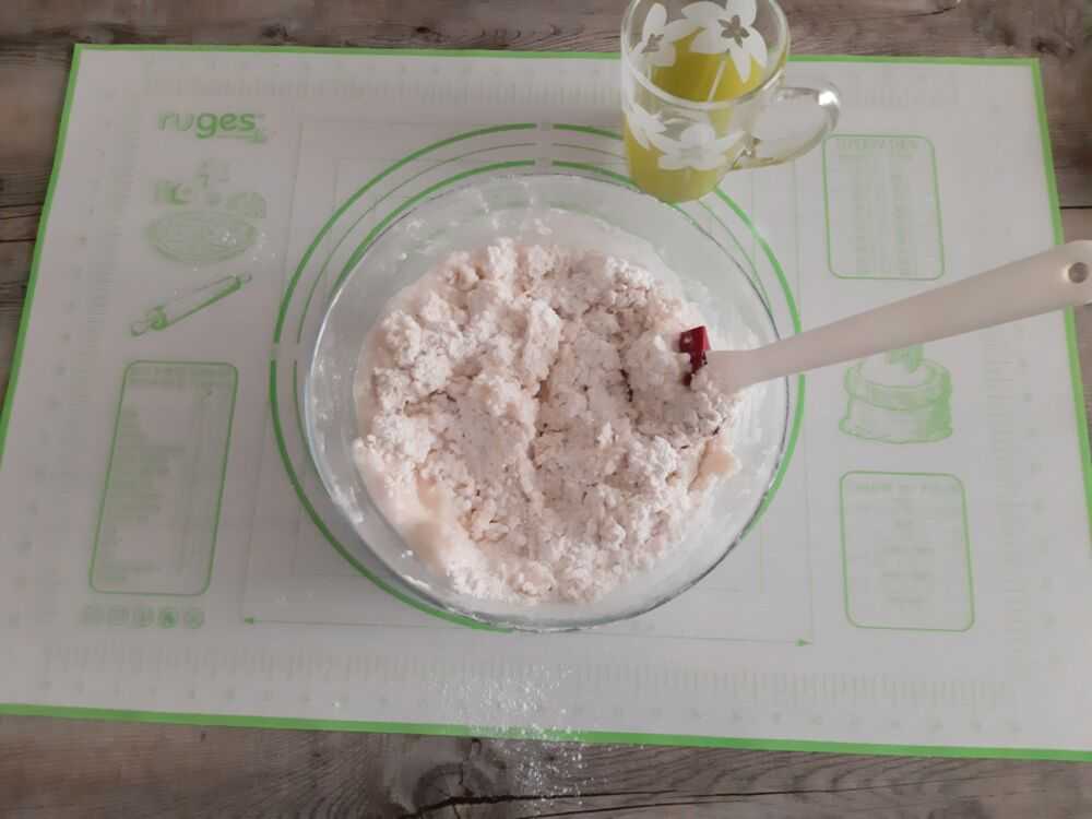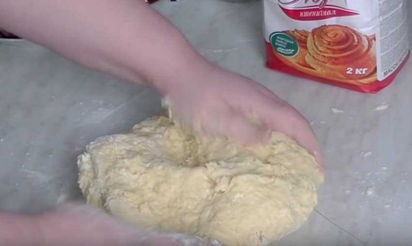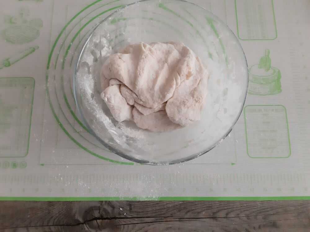 4. Когда перемешивать в миске уже невозможно, нужно переложить на стол.