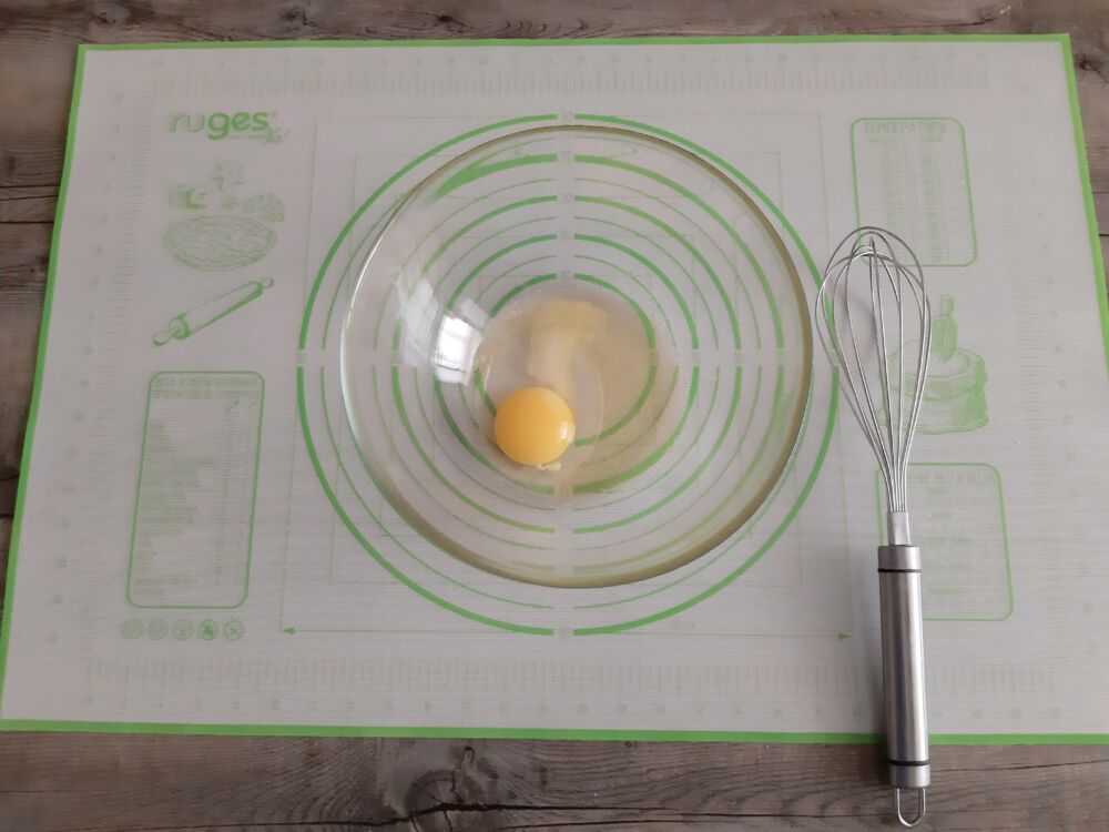 В рабочую миску разбиваем яйцо. Добавляем соль и растительное масло. Смешиваем венчиком все компоненты, взбивать до пены не нужно.