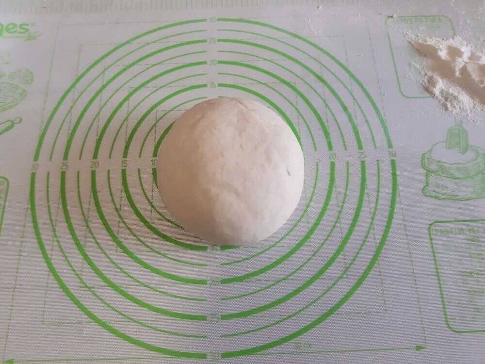 Формируем колобок, заворачиваем в небольшой кусок пищевой пленки, и оставим на 20-30 минут. За это время клейковина в муке разойдется и тесто станет упругим, эластичным.