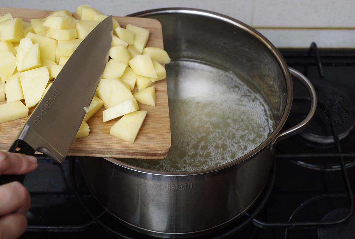 Замечание!При варке некоторых сортов картофеля может происходить образование белой пены. Эту пену следует снимать ложкой по мере необходимости, чтобы не загрязнить ею суп.