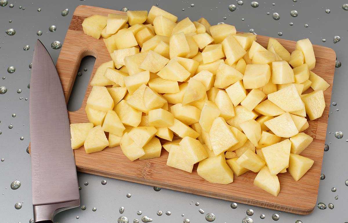 Мою и чищу картошку. Нарезаю её крупными дольками.