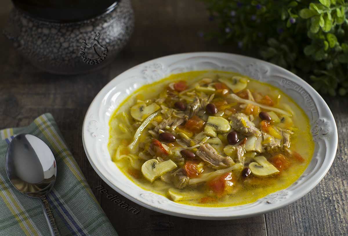 В готовый суп можно положить порезанное мясо индейки или, как вариант, хранить его в отдельном контейнере и класть индивидуально в каждую тарелку по вкусу.