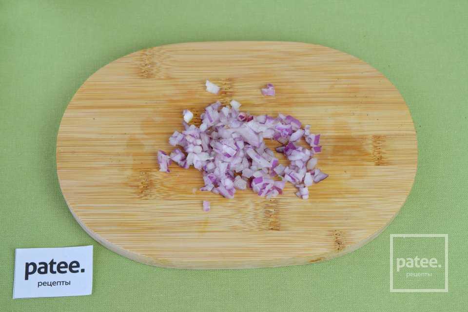 - Лук освободить от шелухи, мелко нарубить и соединить с каперсами.