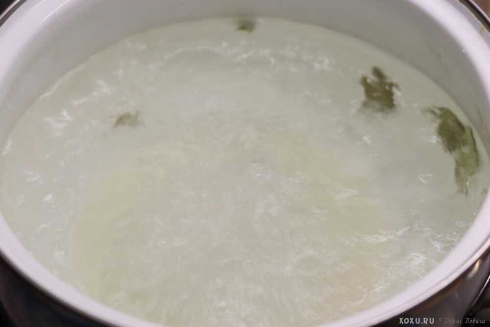 Фото этапа 3. Отлично! Буквально 2 минуты, и вода снова интенсивно кипит. Можно сбавить огонь, чтобы контролировать пенку, и она не ушла за пределы кастрюли. Главное – держать режим кипения