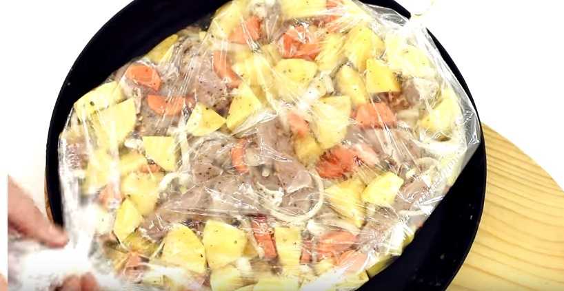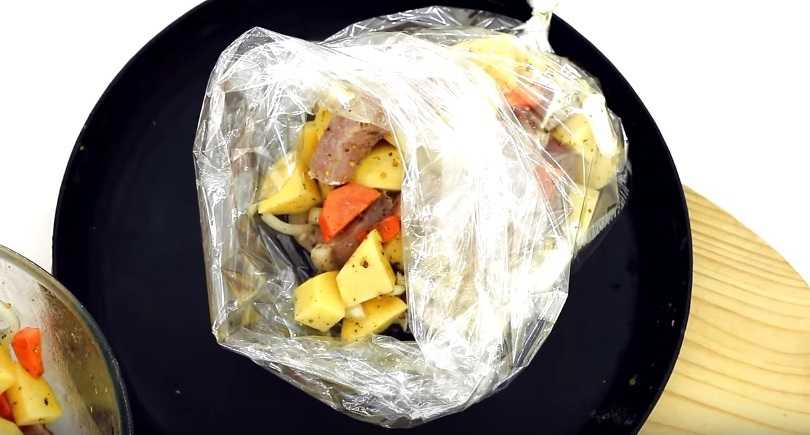 Заполните пакет до конца и разровняйте руками его содержимое, чтобы оно «легло» в один слой. Тогда все компоненты блюда приготовятся равномерно и не будут сыроватыми.