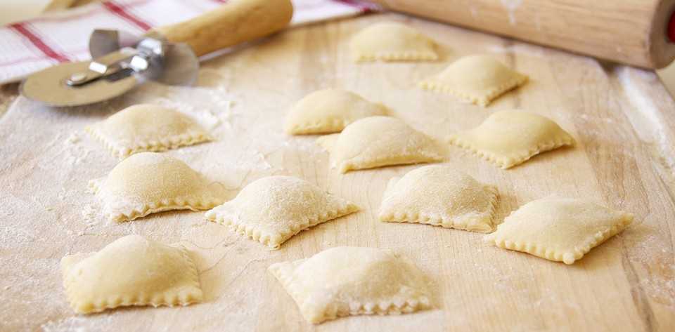 - для приготовления используют пресное тесто. Можно экспериментировать, но если вы хотите в итоге получить равиоли, то не нужно;