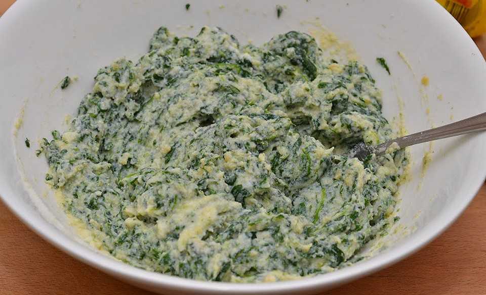 - Шпинат обдаем кипятком, и перетираем в пюре.