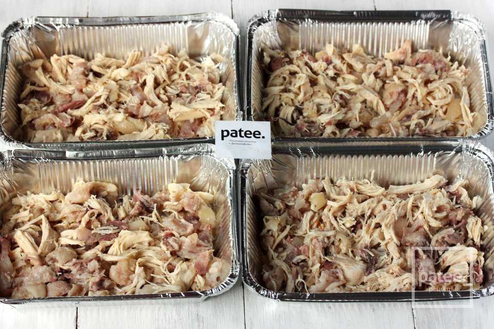 Так разбираем всё мясо, выкладываем по подготовленным мисочкам.