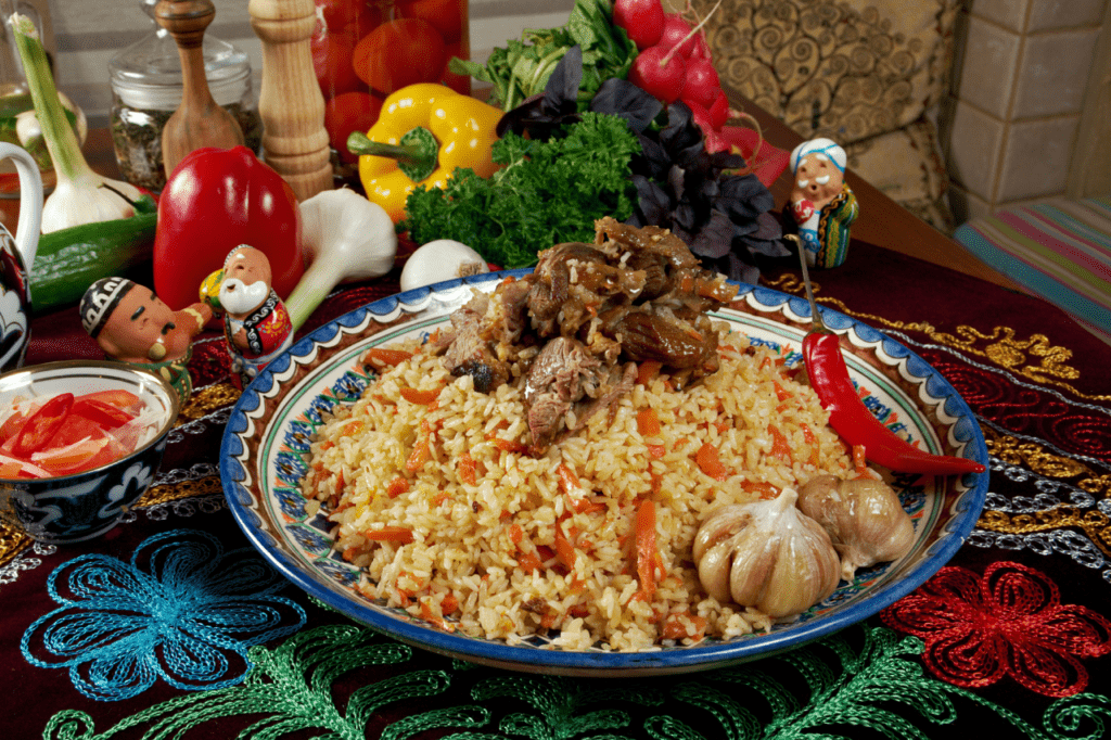 По узбекской технологии плов следует готовить в казане. В это блюдо нужно положить баранину, которую возможно заменить кусочками говядины. По классическому рецепту в блюдо нужно добавить курдюк.