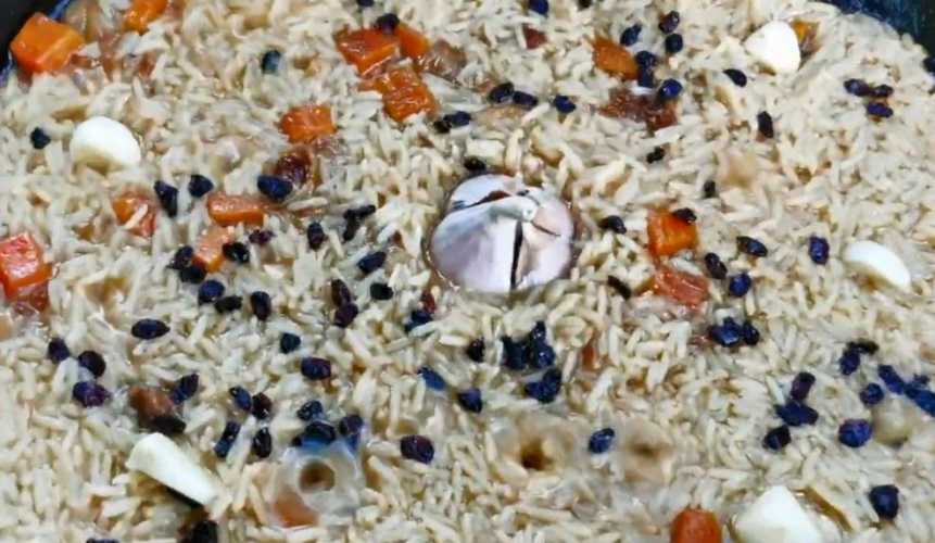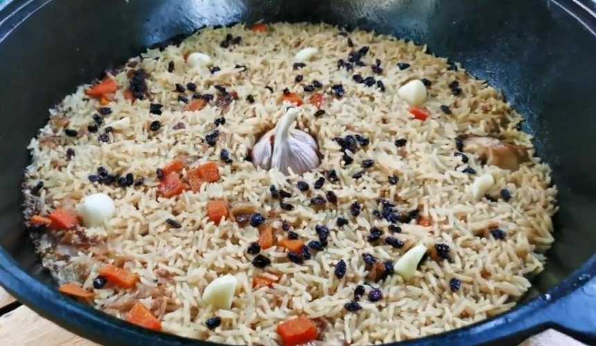 Азербайджанский плов с сухофруктами и мясом — рецепт на костре (плите)