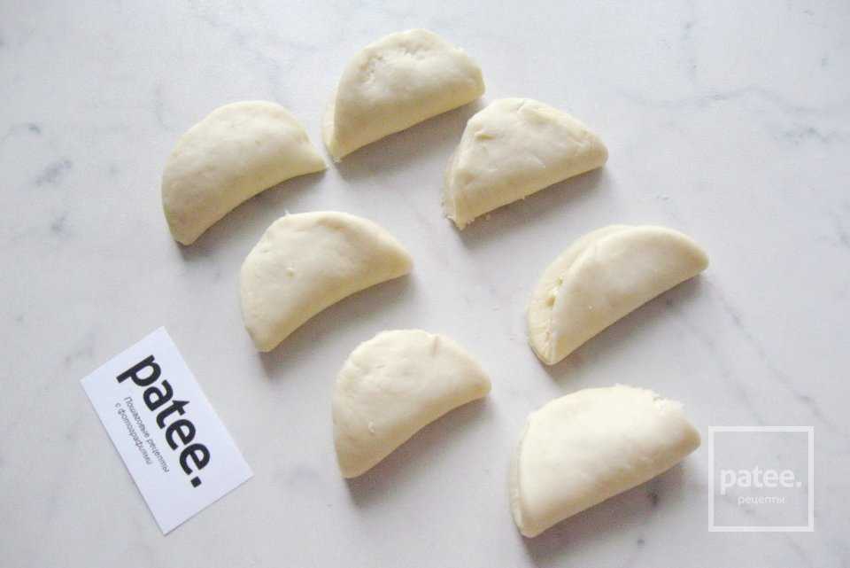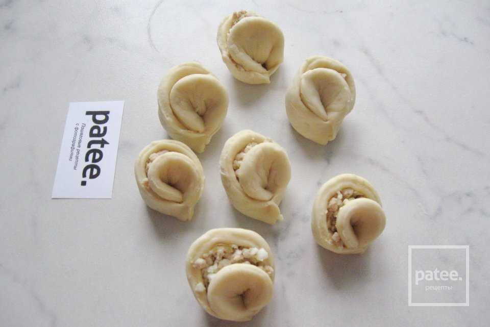 Сворачиваем кружки с начинкой, как вареник, но не залепляем.