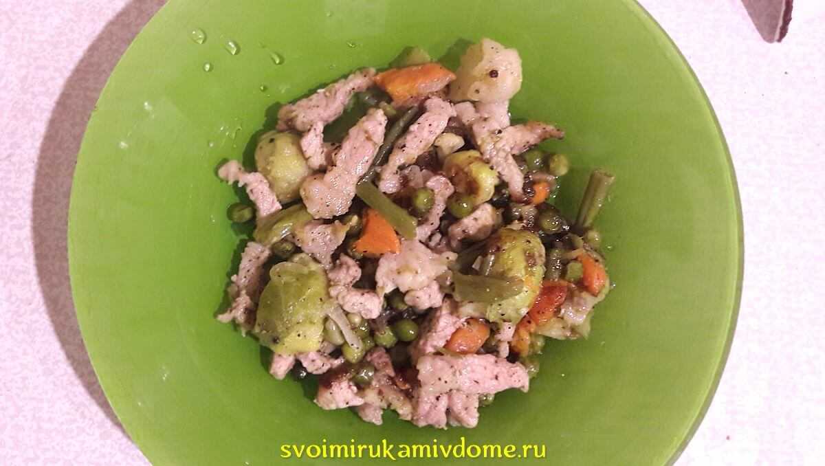 Теперь заключительные действия. Закройте крышку мультиварки и установите режим «Тушение» на один час, а если ваша мультиварка с функцией скороварки, то достаточно будет 30-35 минут.