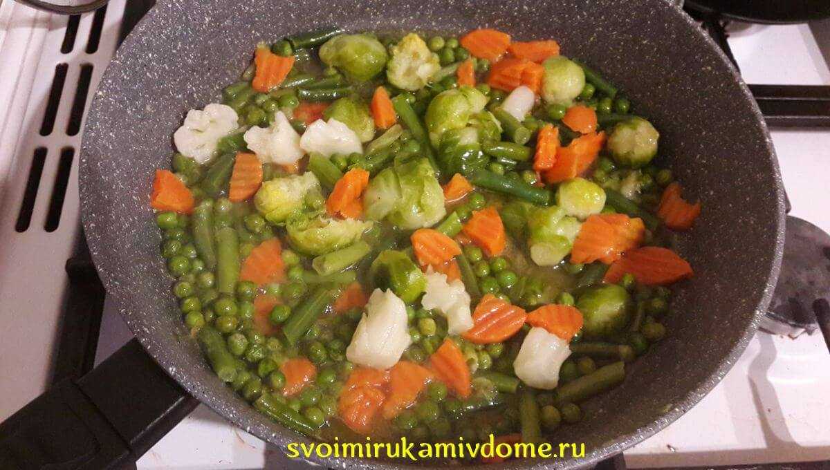 За 5 мин. до окончания тушения рекомендуется добавить измельченный чеснок и перемешать компоненты.