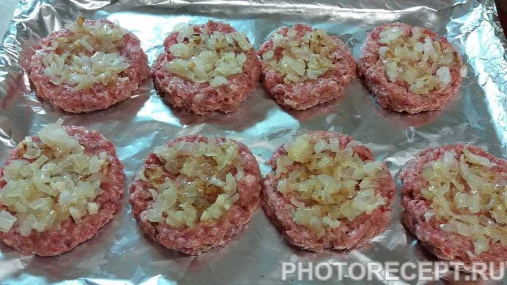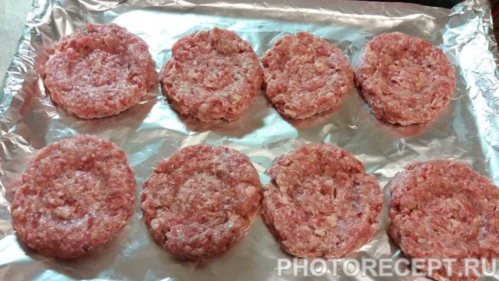Из получившегося фарша делаем круглые плоские котлетки, делаем в середине каждой небольшое углубление.