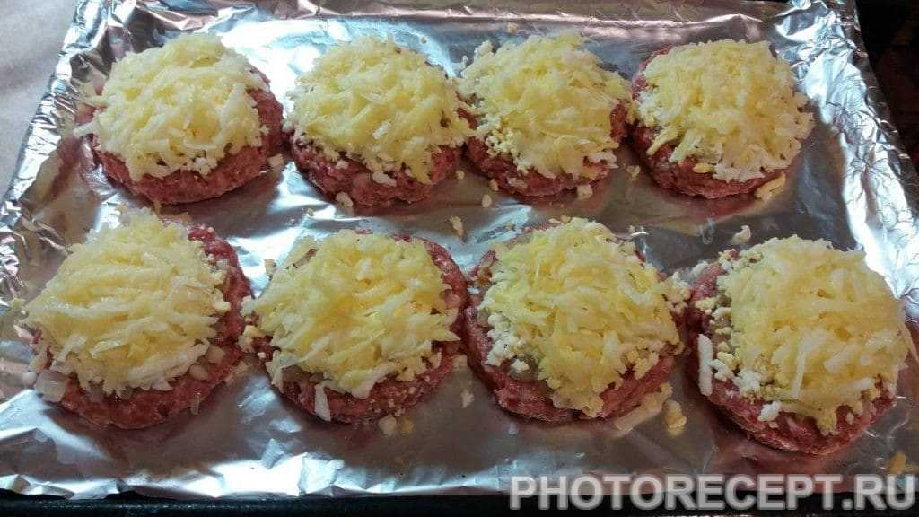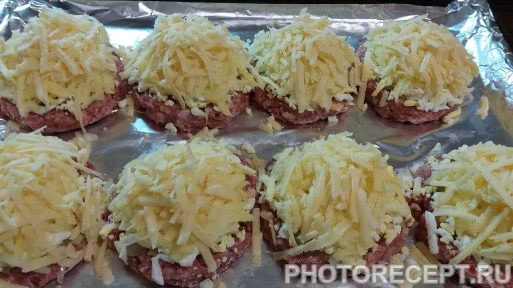 Последний слой — тертый сыр. Если фарш не жирный, можно сверху помазать майонезом или сметаной. Отправляем в разогретую до 180 градусов духовку минут на 50. Готовим на умеренном огне.