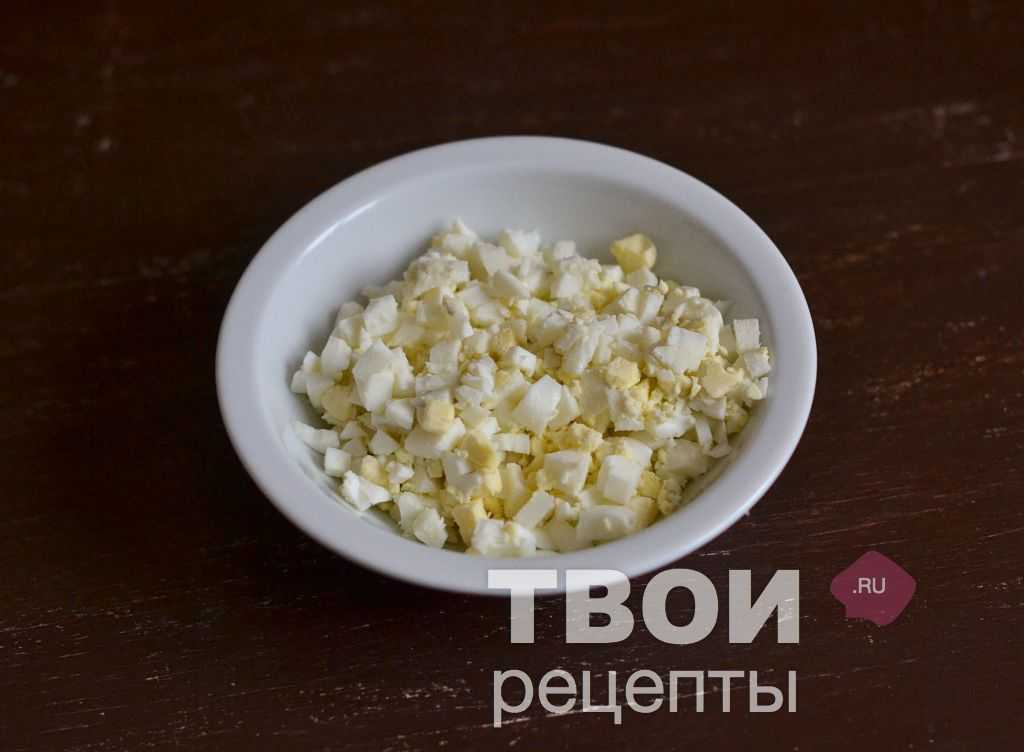 Яйца сварить вкрутую, мелко порезать