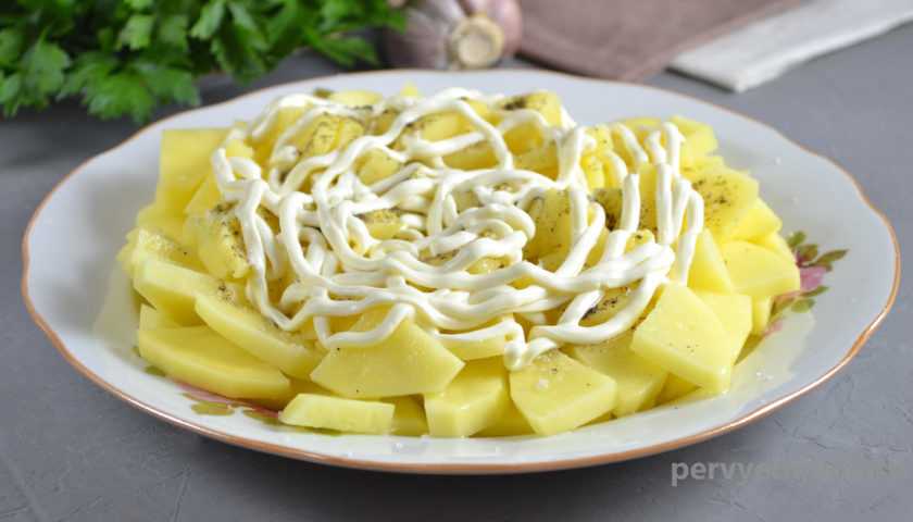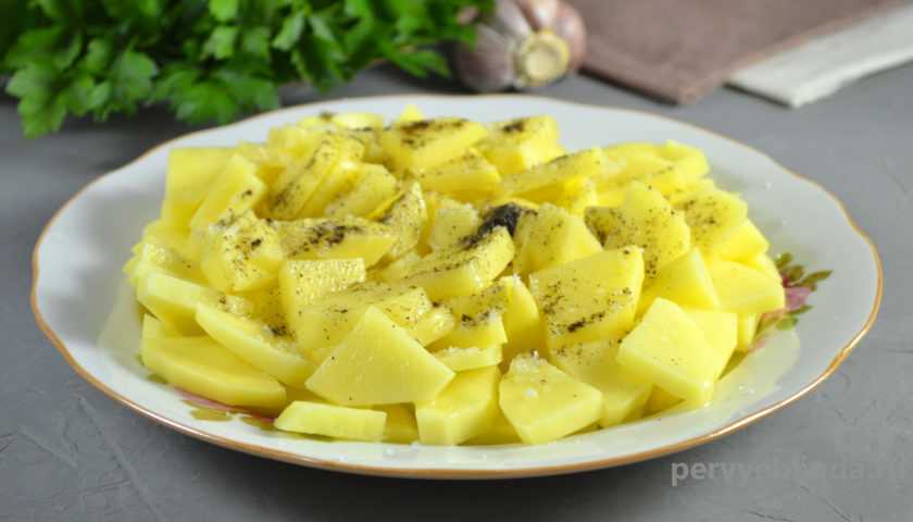 - В отдельной емкости картофель посолите.