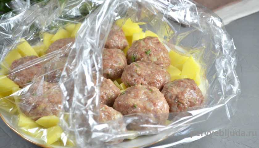 Видеорецепт приготовления тефтелей с картошкой в духовке