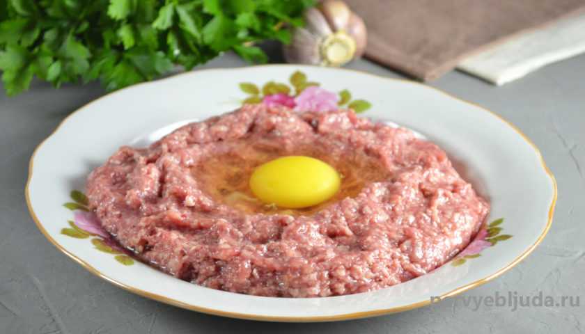 - После этого заготовку нужно ещё раз тщательно перемешать и размять руками так, чтобы яичный желток полностью растворился в фарше.