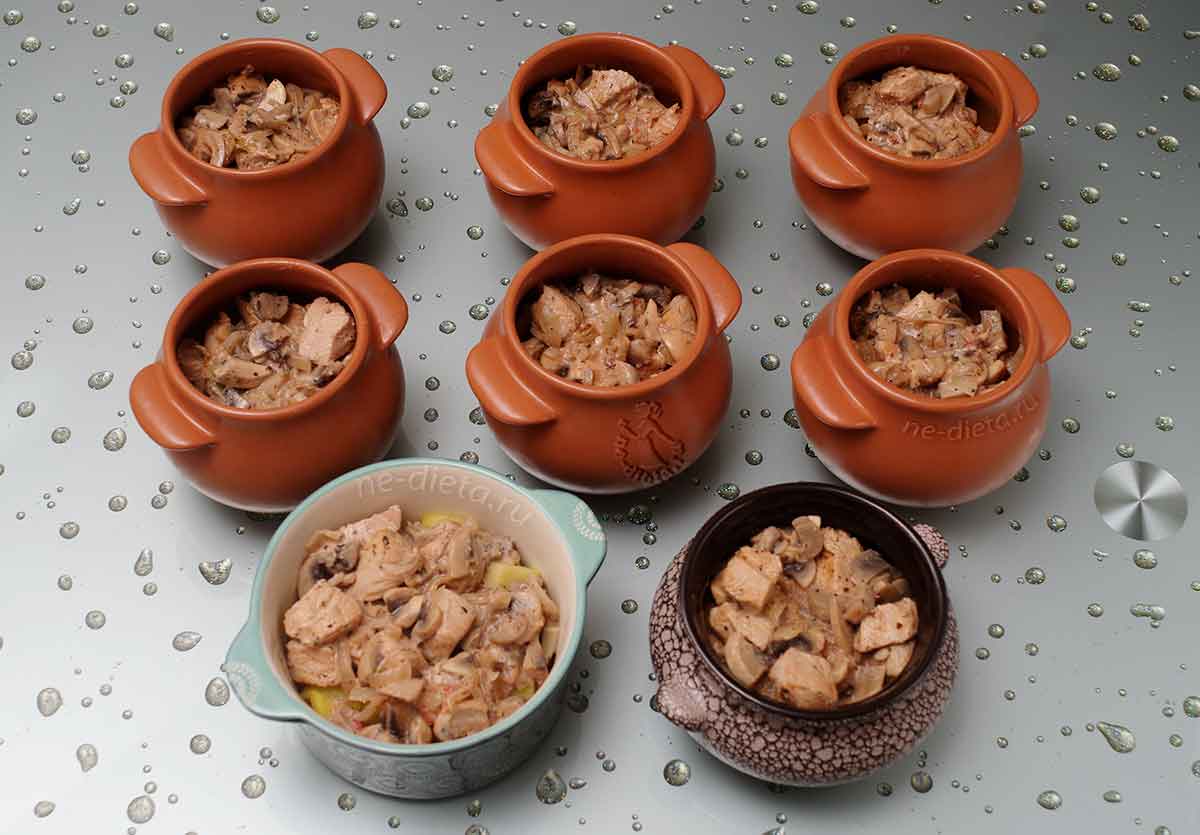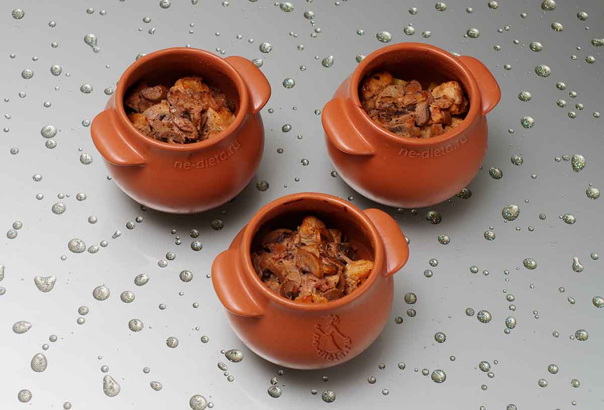 А ещё есть возможность угодить одновременно всем членам семьи или гостям. Скажем, вы знаете, что кто-то любит острое, другой – предпочитает кушанье с грибами. В один горшочек вы добавляете жгучий перчик, а в другой шампиньоны или вешенки. Главное – не перепутайте, кому и что потом подносить.