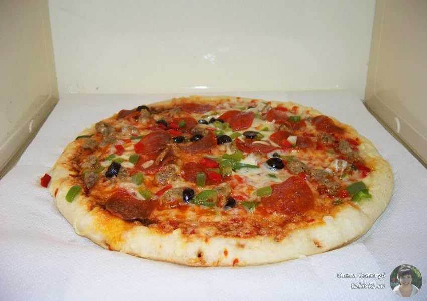 Бывает такое, что я замешиваю тесто, а все следующие этапы уже делают муж с дочерью. Но когда по каким-либо причинам возможности долго возиться с тестом у меня нет, на помощь приходят готовые основы, которые можно приобрести в любом супермаркете в хлебном отделе. В таких случаях моя помощь и вовсе не нужна. Даже школьнику под силу такая задача, учитывая ещё тот факт, что запекается пицца не в духовке, а в микроволновой печи, что значительно безопасней для детей.