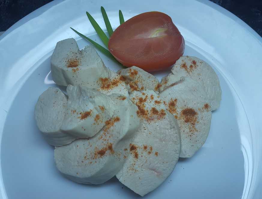 После закипания грудку нужно выдержать в емкости в течении 10-15 минут, или до достижении 65 градусов внутренней температуры — можно измерить кухонным термометром.
