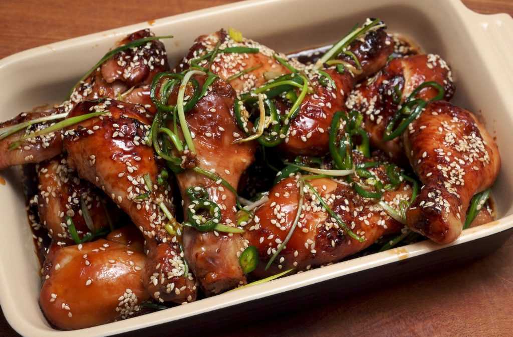 Полноценной заменой привычной птицы, запеченной целиком, станут куриные ножки, приготовленные в маринаде из меда с кунжутом, напоминающие блюдо из средиземноморской кухни. Для этого необходимы продукты: