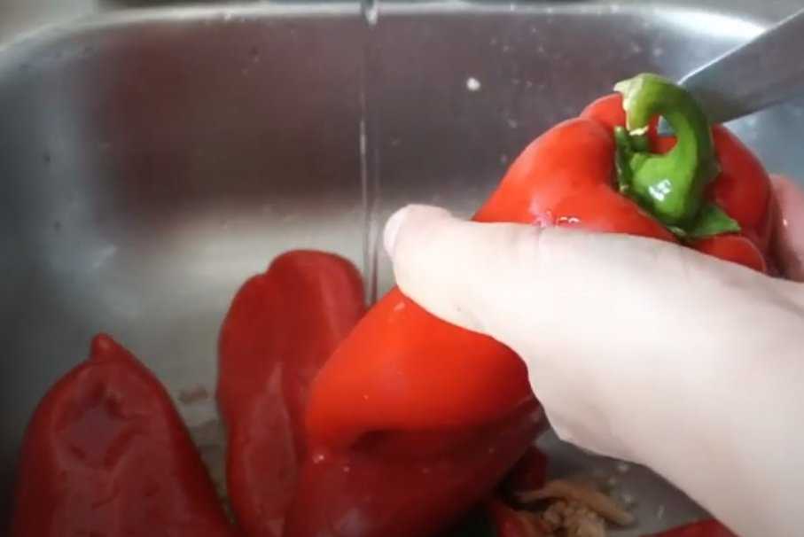 - Удалите колпачок у перцев, и выньте семена.