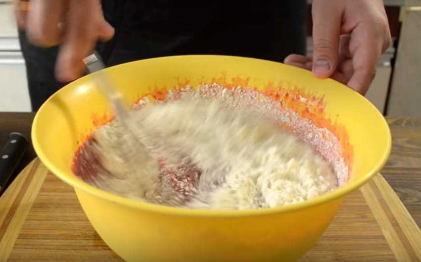 Туда же добавить муку, снова перемешать, перелить всю массу в отдельную емкость.