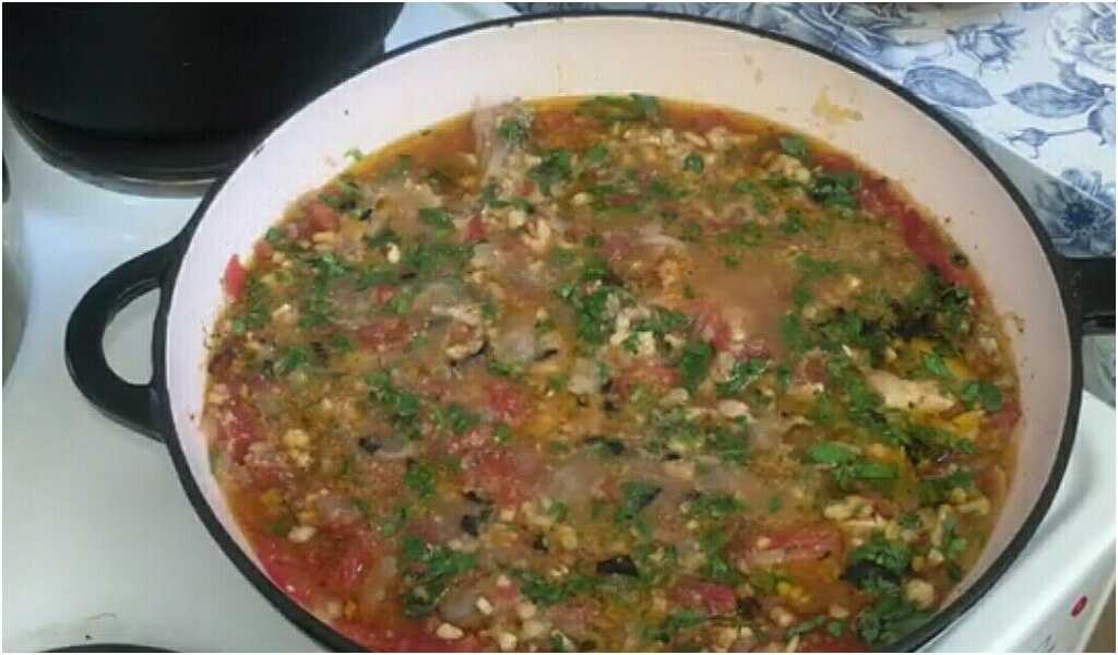 Дополнительный вкус блюду придадут грецкие орехи и ароматные травы. Кроме кинзы, добавляют зелень петрушки, красный базилик (рехани), чабер. А так же приправы – шафран, эстрагон, орегано