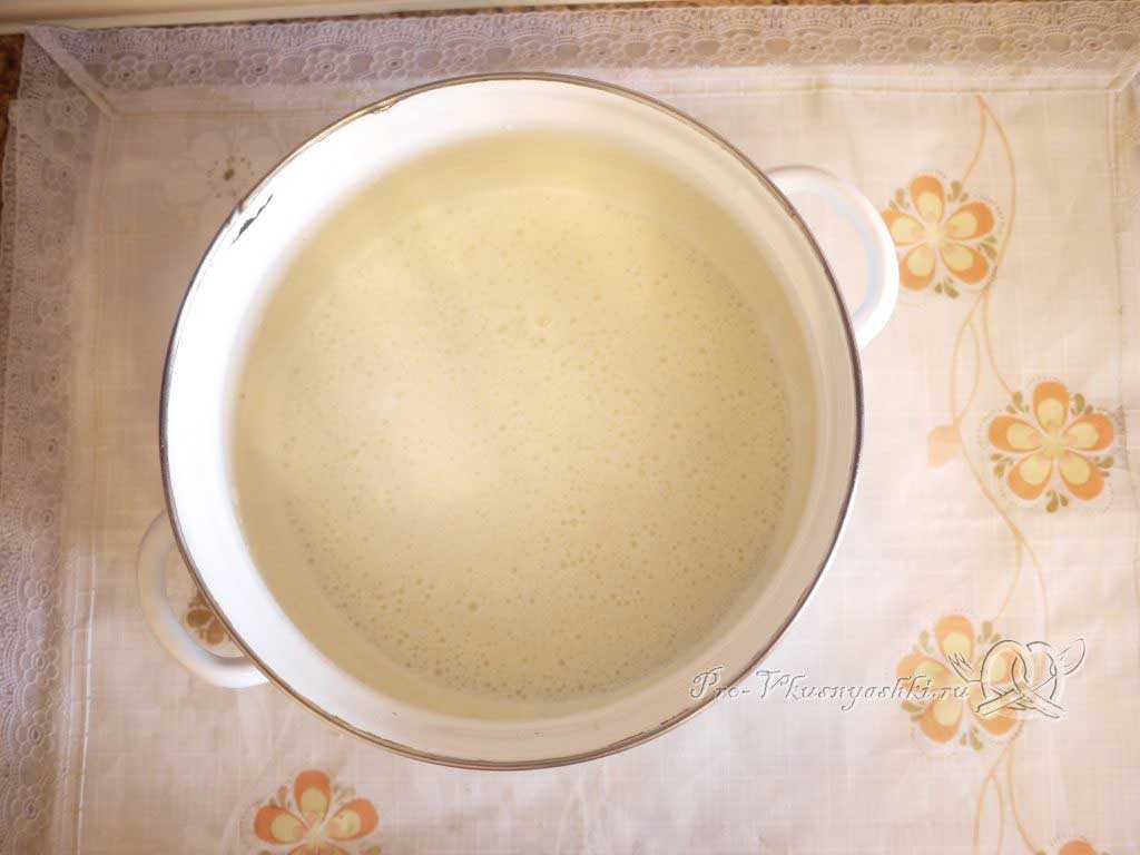 Для приготовления опарного теста размешать дрожжи в небольшом объеме теплого молока с сахаром и мукой. Поставить миску с опарой в теплое место, пока на ней не появится пенная шапочка. Добавить в опару оставшееся молоко, яйца, растительное масло, соль и муку. Замесить тесто и оставить в теплом месте для расстойки. Подошедшее тесто 2 раза обмять.