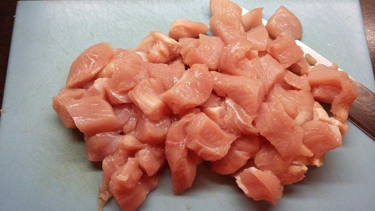 2. Индейку промывают, обсушивают и нарезают кубиками.
