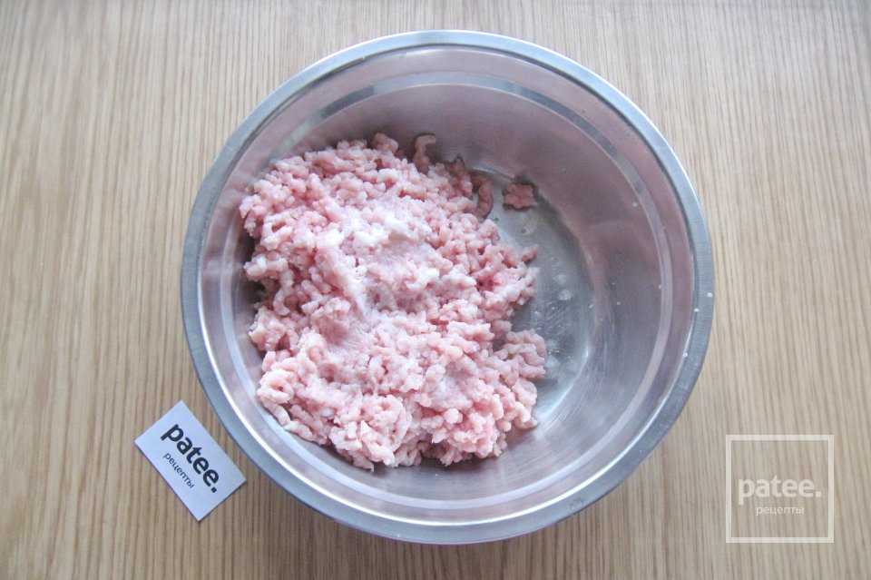 Посолите и поперчите. Соли на такое количество фарша достаточно одной чайной ложки.