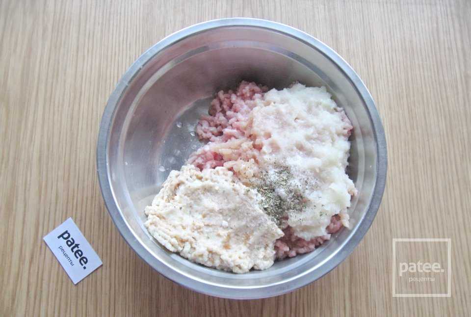 4. Фарш перемешать с солью и перцем, по желанию можно добавить в него любимые специи. Хороши будут молотый кориандр, зира, паприка, сухие пряные травы — орегано, розмарин, тимьян.
