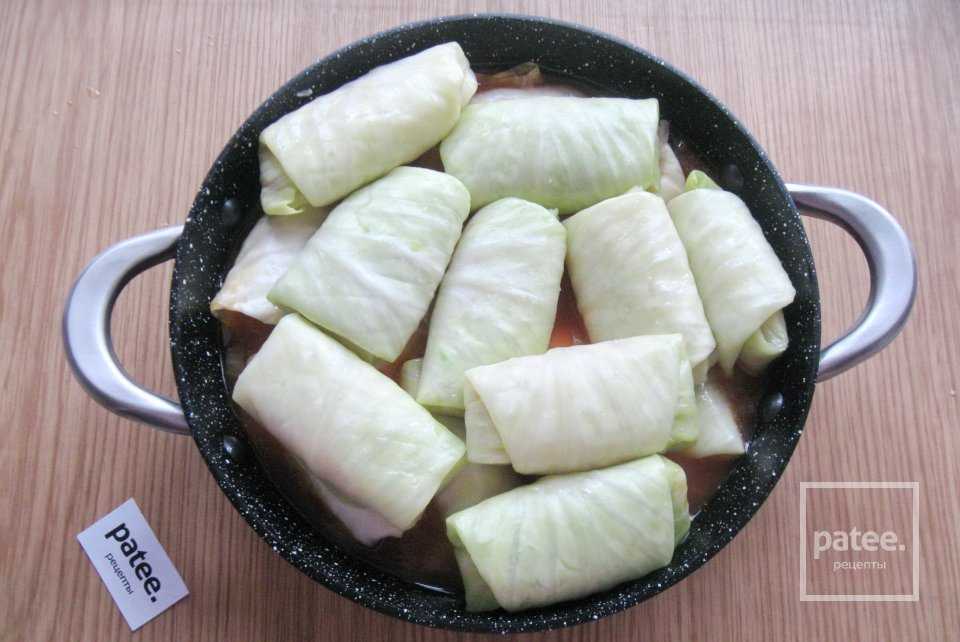 19. Свернуть голубцы и плотно сложить в глубокую кастрюлю или сотейник;