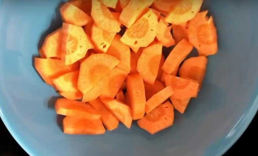 Морковь и лук взять среднего размера, очистить и вымыть, просушить. Нарезать морковь продолговатыми полосками, луковицу нашинковать кубиками среднего размера.