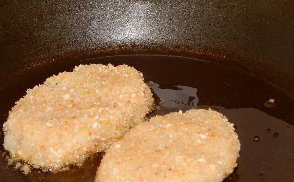 Обжаривать сформированные полуфабрикаты на масле виноградной косточки. Это масло можно заменить любым растительным, либо жарить вообще без него (если сковорода с антипригарным покрытием).