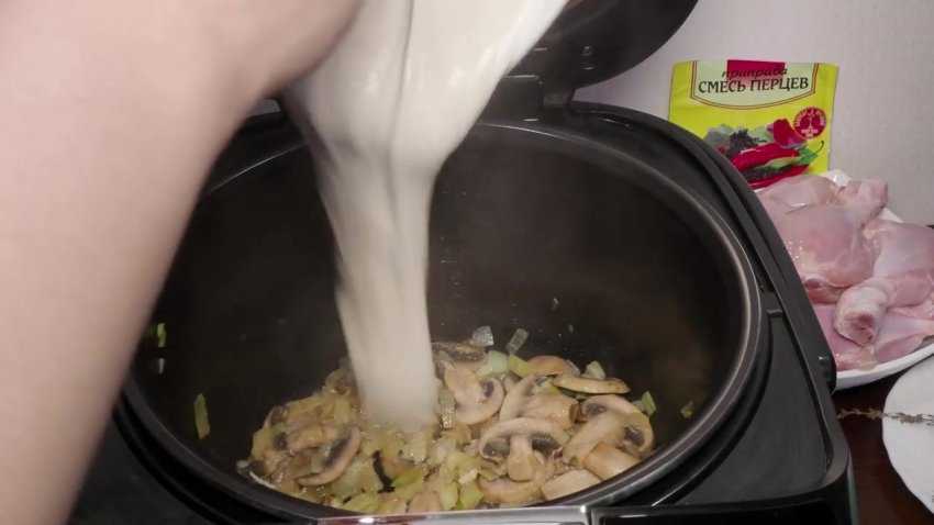 Рецепт 1. Курица с грибами в мультиварке со сметаной