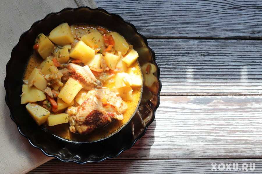 Тушеная картошка с курицей в кастрюле. Пошаговый рецепт